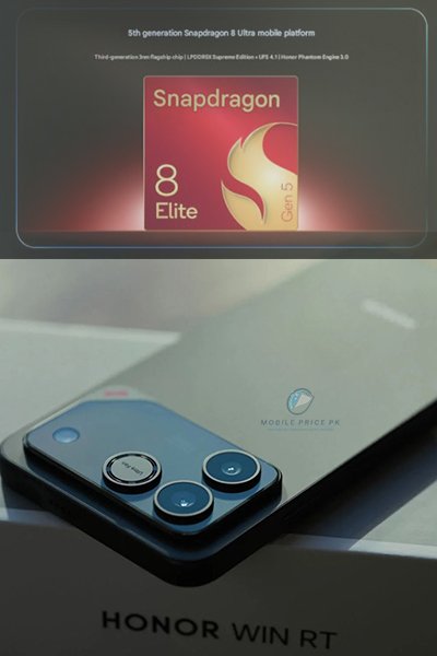 The biggest highlight of Honor Win RT is its massive 10000mAh Silicon-Carbon Li-Po battery – one of the largest ever packed into a mainstream smartphone . This powerhouse supports 100W wired fast charging and 27W reverse wired charging, allowing you to juice up quickly or even charge other devices on the go . For photography, the device features a dual rear camera setup: a 50MP wide camera with f/2.0 aperture, dual pixel PDAF, and OIS paired with a 12MP 112° ultrawide lens with AF . Selfie lovers will appreciate the 50MP front camera that captures 4K video at 30/60fps with gyro-EIS stabilization – perfect for vloggers and content creators in Pakistan .
