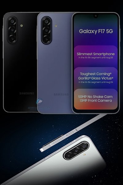 The Samsung Galaxy F17 is a stylish and modern mid-range smartphone from Samsung Electronics that offers a strong mix of features at an affordable price. It comes with a large 6.7-inch Full HD+ display with sharp 1080 × 2340 resolution, giving users bright colors and clear visuals for videos, browsing, and gaming. The screen is protected by Corning Gorilla Glass Victus, making it more durable for daily use. The slim body, lightweight feel, and premium glass front with a fiber-reinforced plastic back give it a clean and attractive design. With IP54 splash resistance and a side-mounted fingerprint sensor, the phone is built for both style and practicality.